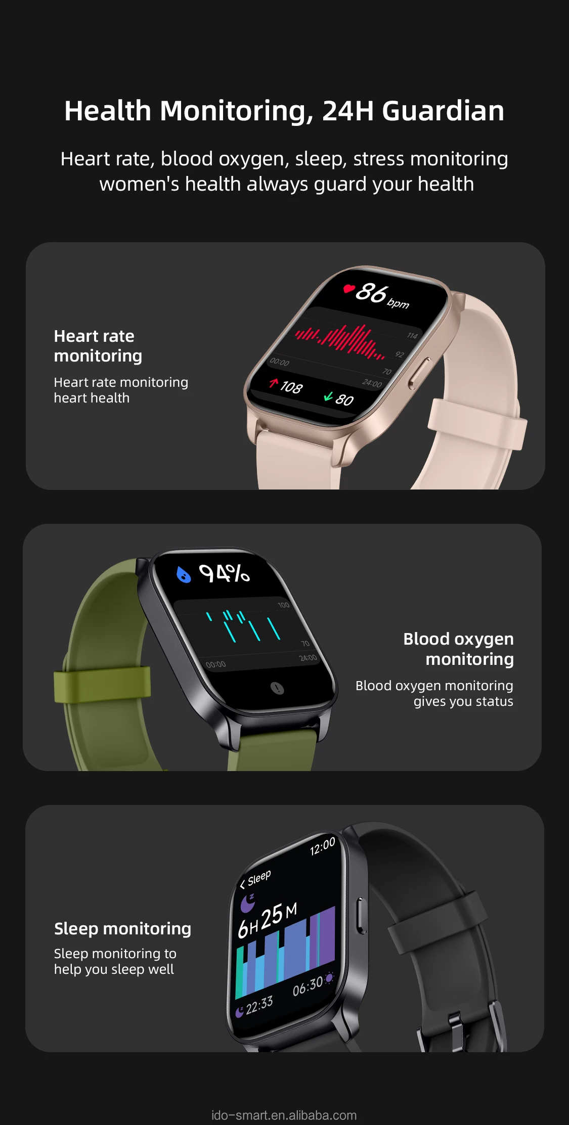 100 cloud dials, 3 built-in dials (3 cloud dials + 1 wallpaper dial) 100 sports modes, 20 built-in sports modes, 4 self-sports recognition, intelligent running Continuous heart rate, blood oxygen, pressure, sleep monitoring, calories, steps, distance throughout the day Reminders (incoming calls, messages, alarm clock, drinking water, health, power, goal achievement, women's health) Weather forecast, find phone, music control, alarm clock, timer, stopwatch, flashlight, women's health tracking 7 days of battery life, 5 days of BT battery life |
